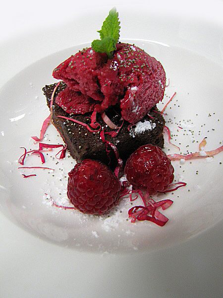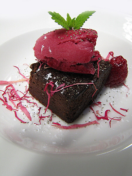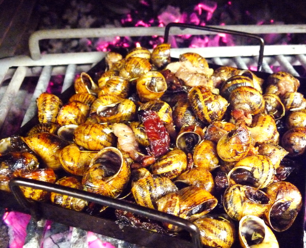 (Clicar damunt les imatges per ampliar-les) Figa farcida de foie sobre un jaç de fullaraca(Fotografia: La Calèndula) Rovell d'ou dins un niu de marenga de florsi foie (Fotografia: La Calèndula)