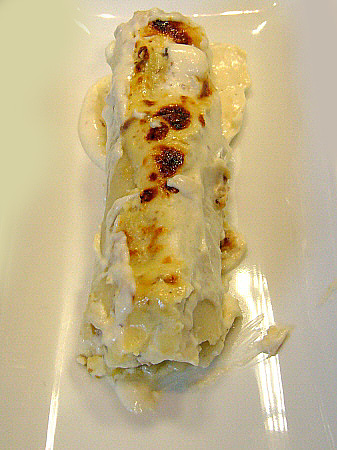 Caneló de carn, foie i tòfona amb beixamel suau de parmesà