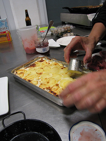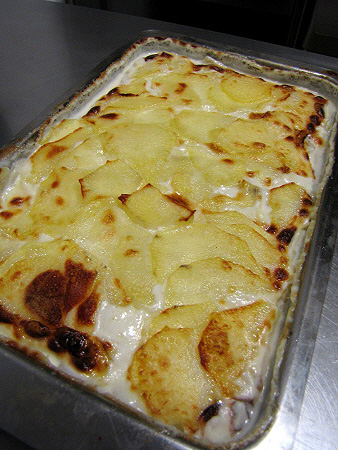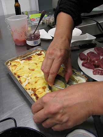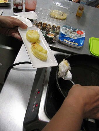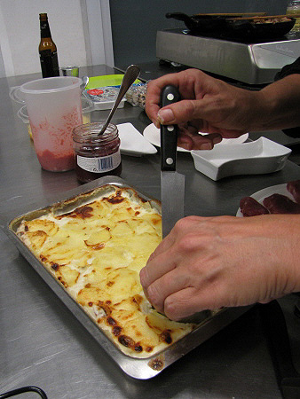 Gratinat de patates amb ous de guatlla i gules
