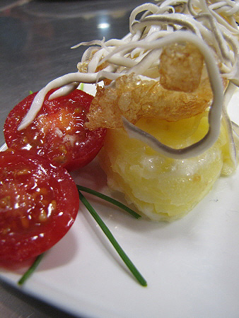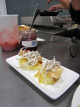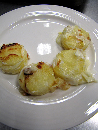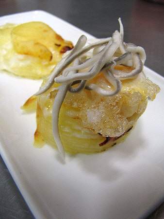 Gratinat de patates amb ous de guatlla i gules