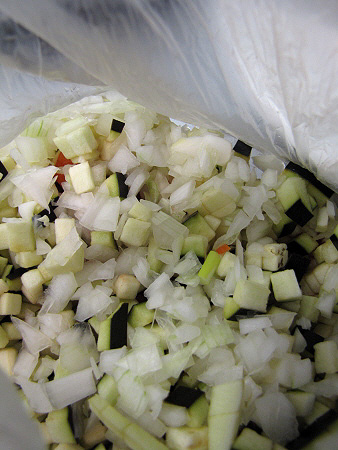- Pebrot verd i vermell tallat a daus