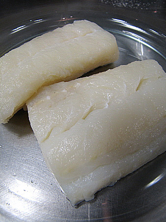 Coure-hi el bacallà remullat i tallat a trossos, durant uns 5 minuts a foc lent.