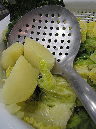 Reportatge del procés. Preparació de la col, les patates i el bacallà