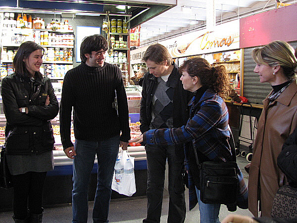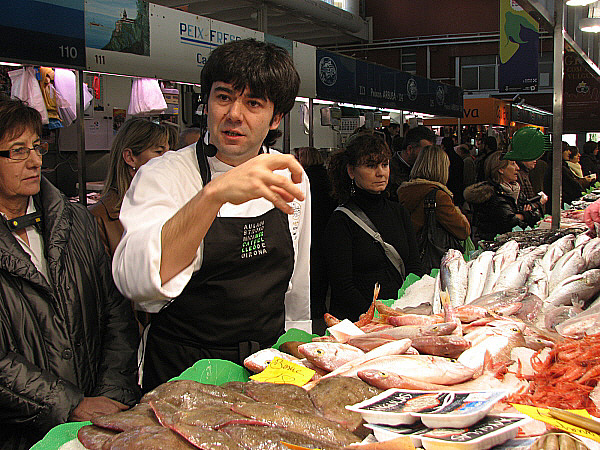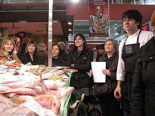 Abans de començar la sessió, es va procedir, amb la participació de tots els assistents, a la compra dels ingredients necessaris a les diverses parades del Mercat del Lleó de Girona. Aquest n'és el reportatge.