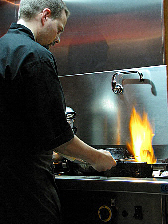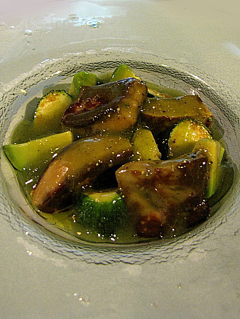 | Foie-gras de l'Empordà a la planxa amb alvocat, carbassó i curri verd.[Pujar] | ||||||||||