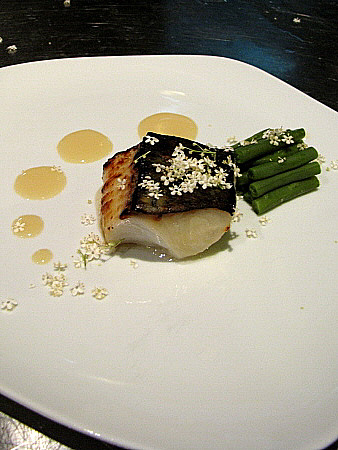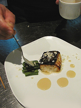 | Peix mantega d'Alaska macerat en miso i litxi, rostit al forn.[Pujar] | ||||||||||