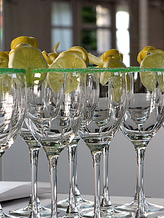 Es pot decorar la copa submergint la vora en xarop de menta verda i sucre, i afegir-hi unes rodelles de llimona.
