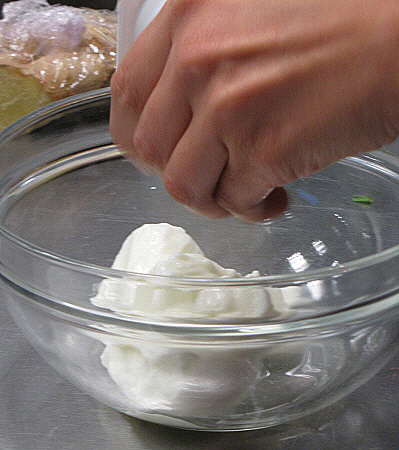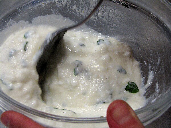 Es posa el resultat en un bol, i es serveix amb verdures crues com a dip: tires de pastanaga, api, coliflor, fulles d'endívia, xampinyons a làmines, tires de cogombre, etc.