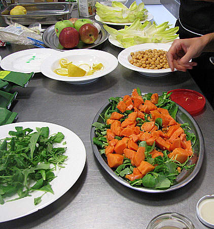 Es posen tots els ingredients en un bol d'amanida i es decora amb sèsam torrat.