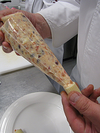Pasta farcida amb tomàquet, olives i formatge Flor de Neu