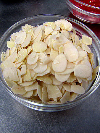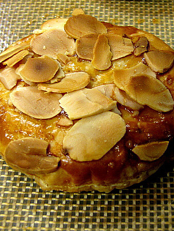 Un cop ho tinguem, fem una placa amb el corró i tallem les peces amb un tallant. Després les pintem amb un ou i hi posem ametlla picada per sobre i les posem al forn a 180º C durant 15 minuts.