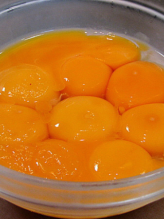 En primer lloc, muntem les clares a punt de neu amb els 225 grs de sucre. Després hi afegim els rovells i seguim batent. Un cop ho tinguem tot ben lligat, hi afegim la farina i el llevat Royal, i seguim barrejant. Finalment, hi aboquem la xocolata.
