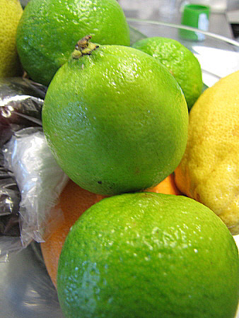 Aquesta darrera fruita és extraordinàriament decorativa; atreu les bombolles de l'anhídrid carbònic de la tònica i forma al damunt de la pell una capa. També confereix al gin tònic una nota molt agradable de color.