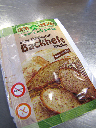 Treure el motlle del forn. Preescalfar el forn. Fornejar el pa a 225ºC durant 50 minuts. Untar-lo amb dues cullerades d'oli i fornejar-lo 10 minuts més.