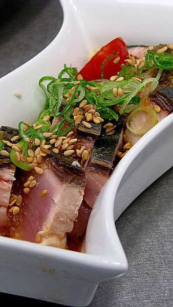 Marcar els filets del peix -només per fora- en una planxa o flama viva, ajudant-nos d'unes broquetes de metall. S'ha de mantenir el peix recte, sense doblegar. Submergir immediatament en un bany de glaçons.