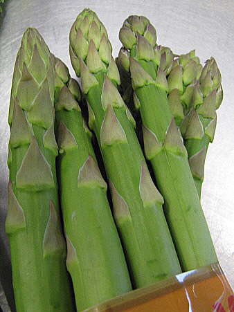 A part saltegem els espàrrecs i els alls tendres. Emplatem els llenguados i els acompanyem amb la guarnició.