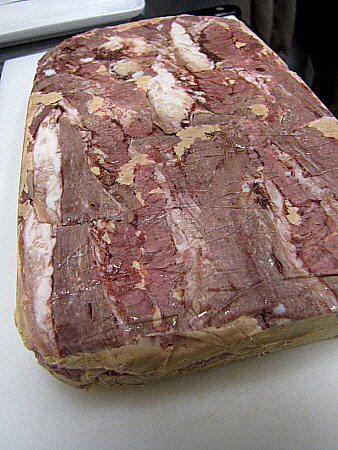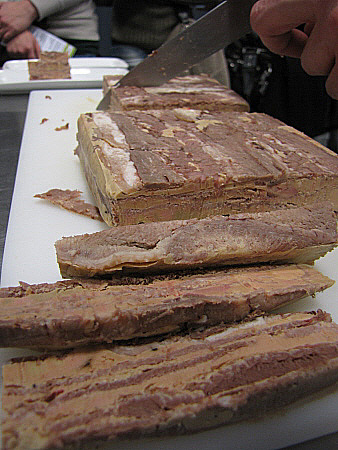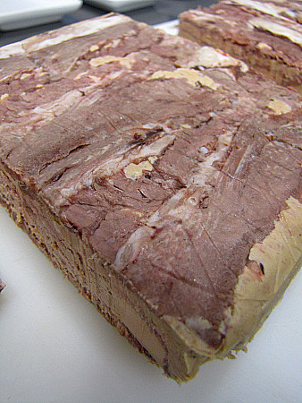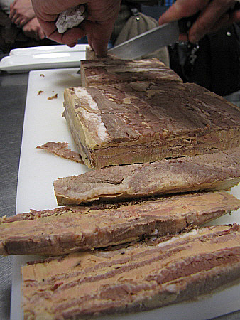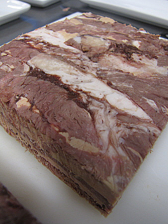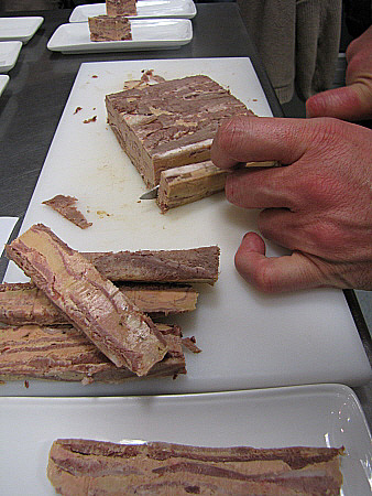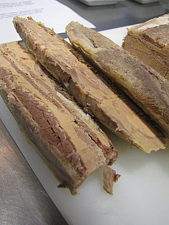 Llengua de vedella amb fetge d'ànec, vainilla, poma verda i brots