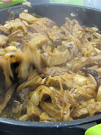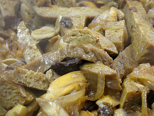 Rostit de seitan amb panses i xampinyons acompanyat de puré de pastanagues