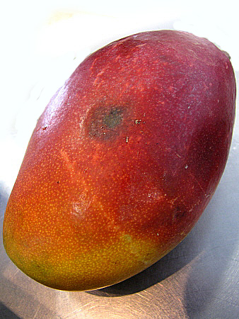 Pelar el mango i pesar-lo. Calcular el 20% del seu pes en sucre, i coure'l a foc lent uns 5 minuts.