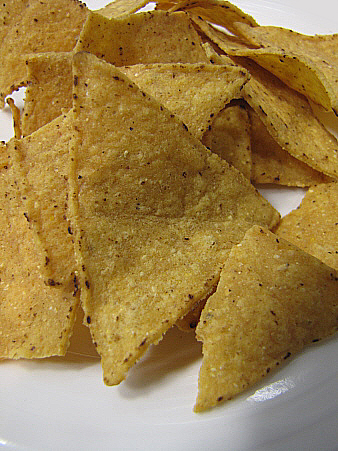 Damunt una capa de tortillas posem la salsa de formatge Cheddar i els talls de formatge Oldenburguer, i ho posem al forn.
