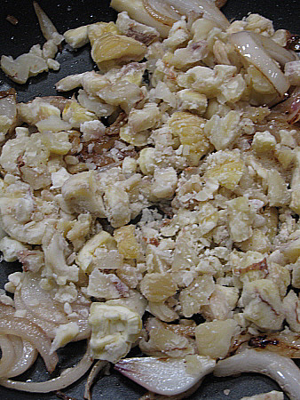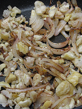 Reportatge del procés. Cocció de la ceba i les castanyes.