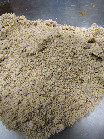Barrejar bé tots els ingredients. Fer una massa, possar-la en una plata, donar-li forma de rotlle i embolicar-la amb film. Per millorar-ne l'aspecte, es pot arrebossar amb llavors de gira-sol crues.
