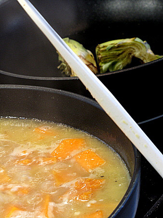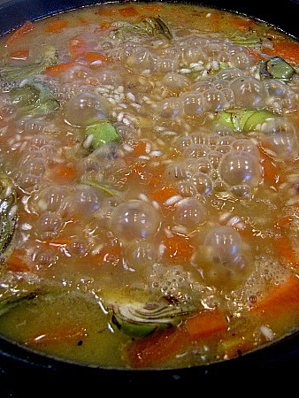Risotto de rogers, carxofes i taronja