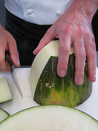 Crema d'alvocat i llima amb fonoll, menta i meló
