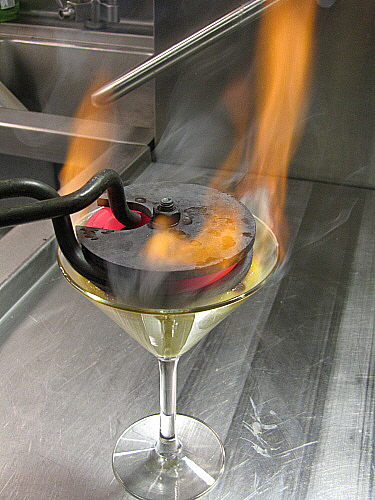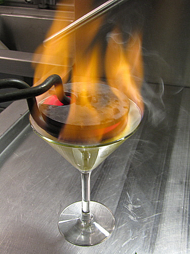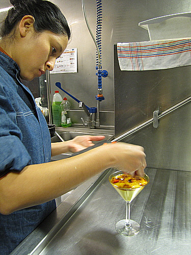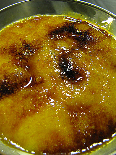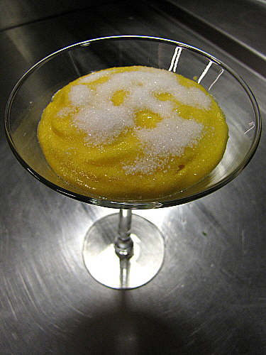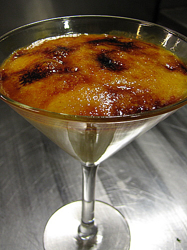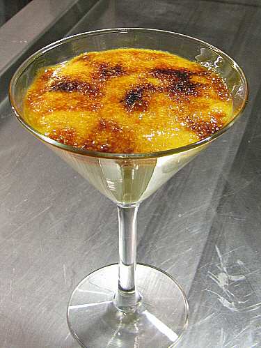![]() Núvol de crema catalana de mango cremada i daus de maduixa |