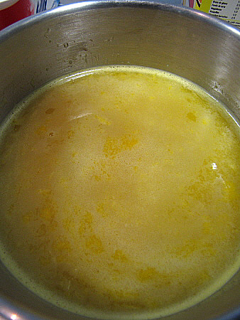 Preparar la salsa de taronja, amb el suc de les taronges, en el que desfem la Maizena (llevat), en fred. Posar la resta de suc en un pot i quan comenci a bullir tirar-hi la Maizena diluïda i el sucre, barrejant bé procurant que no hi quedin grumolls, i remenar fins que espesseixi una mica.