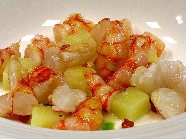 Suquet de gambes de Palamós amb patata melosa