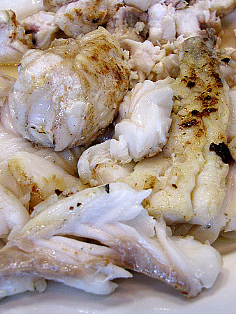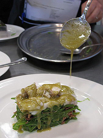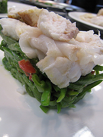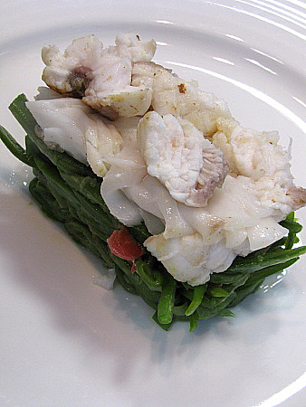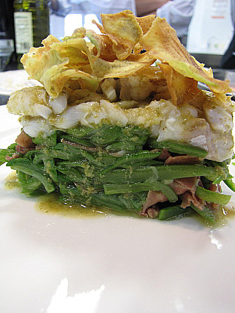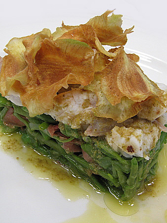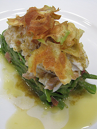 Amanida tčbia de lluē i rap a la vinagreta de tąperes amb cruixent de carxofa