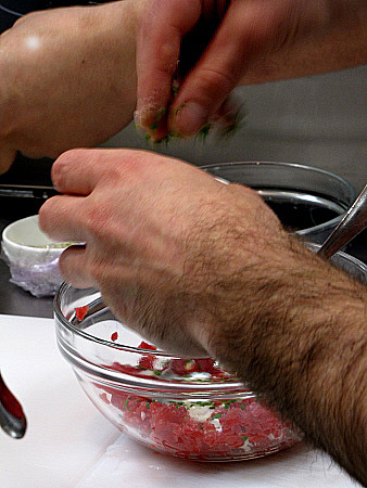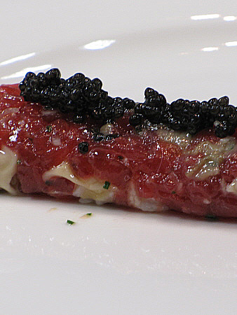 Petit tartar de tonyina amb ostra juràssica i caviar imperial