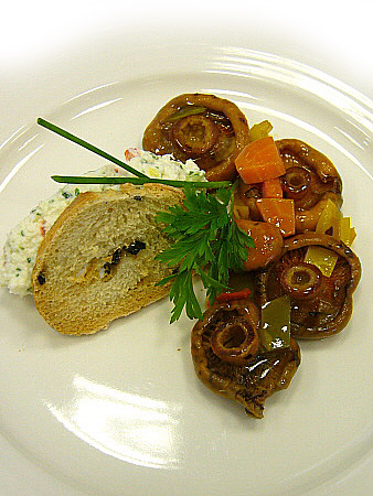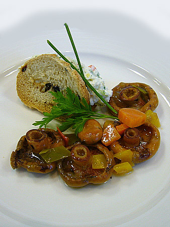 Tàrtar de formatge fresc i rovellons escabetxats