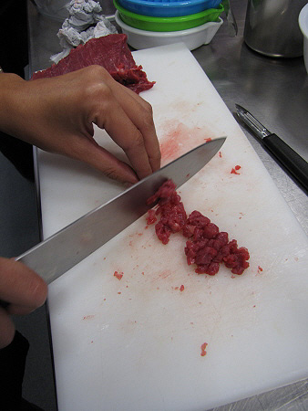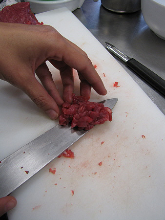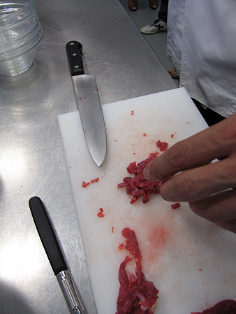 Tàrtar de poltre amb mòres, mostassa i ceba cruixent