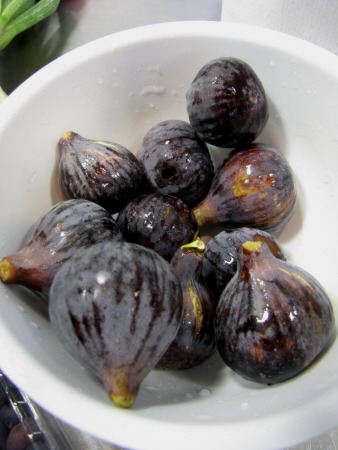 Barrejar el conjunt d'ingredients i servir amb làmines de figa, brots i oli de canyella.