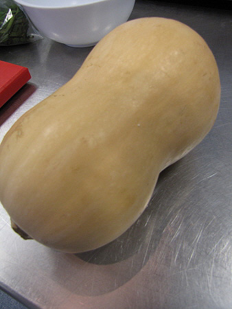 Tallar la carbassa a daus, escaldar-la i refredar-la.