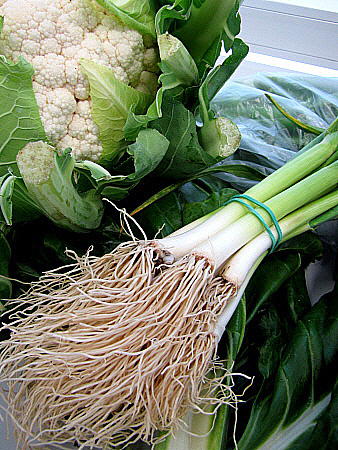 Incorporar altra vegada tota la carn, els alls tendres i la coliflor, mullar amb brou de pollastre fins a cobrir, salpebrar i coure 20 minuts tot el conjunt.