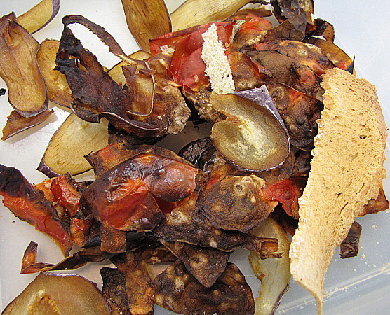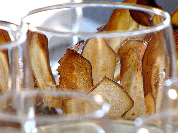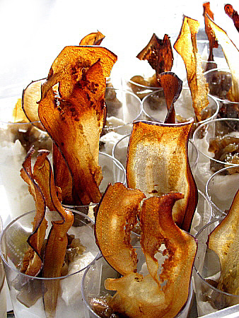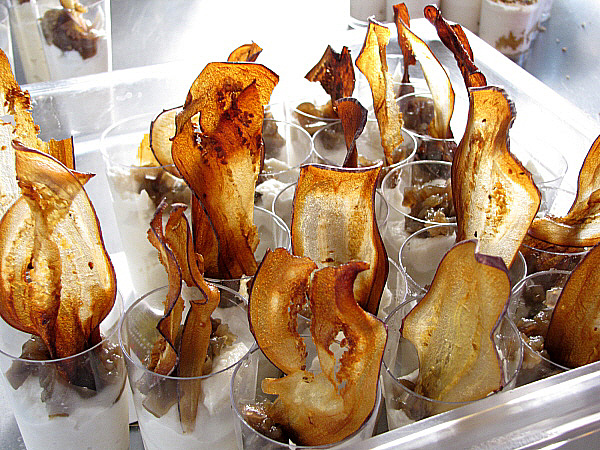 Un cop realitzada la brandada, la deixem refredar i l'acompanyem de làmines d'albergínia que prèviament hem assecat al forn, que també serviran de decoració del plat.