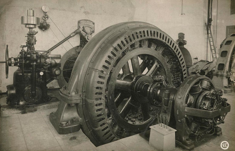 El segle va acabar amb la Guerra Gran entre França i Espanya (1793-97), i, amb ella, tornen els setges francesos sobre Girona i la misèria. Malgrat tot, l’alta natalitat i la immigració fan créixer la població. Arriben a Bescanó el primer cirurgià i el primer mestre i es desenvolupen oficis menestrals: barquers, fusters, ferrers i carreters, corders i teixidors de lli, de cànem i d’espart, sastres i paraires. S’alcen noves cases a les feixes més costerudes i remotes. Central hidroelèctrica. Interior de la central on s'observa maquinària. 1917-1936. Valentí Fargnoli i Annetta. CRDI - Ajuntament de Girona - (Ampliar) El segles XIX.