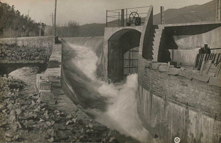 El 1800 es comptabilitzen a la parròquia de Bescanó 423 habitants, dels quals la meitat moren durant la crema de masos, la misèria i l'expatriació que comporten els setges de la Guerra del Francès de 1808-1810. El govern napoleònic (1812-14) designa Montfullà com a cap d’un municipi que agrupava els pobles de Salt, Bescanó i Vilanna. Central hidroelèctrica Berenguer. Vista de la presa. 1917-1936. Valentí Fargnoli i Annetta. CRDI - Ajuntament de Girona - (Ampliar)