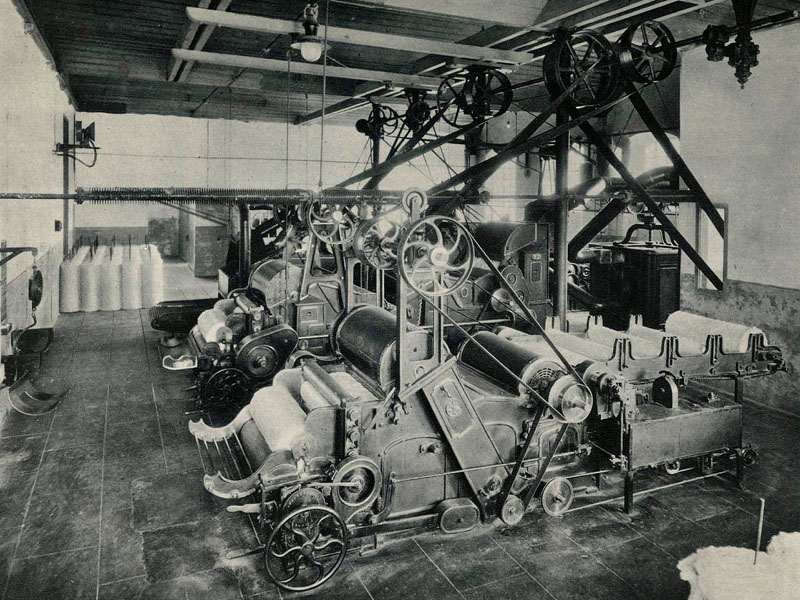 El 1900 les dades demogràfiques atribuïen al municipi 1.966 habitants i el 1930, 2.325. La prosperitat del camp, l’arrelament de la indústria i l’arribada del ferrocarril va fer possible aquest creixement persistent. Interior de la secció de màquines per obrir i batre el cotó de la fàbrica Grober de Bescanó. 1942. Autor desconegut. CRDI - Ajuntament de Girona - (Ampliar)