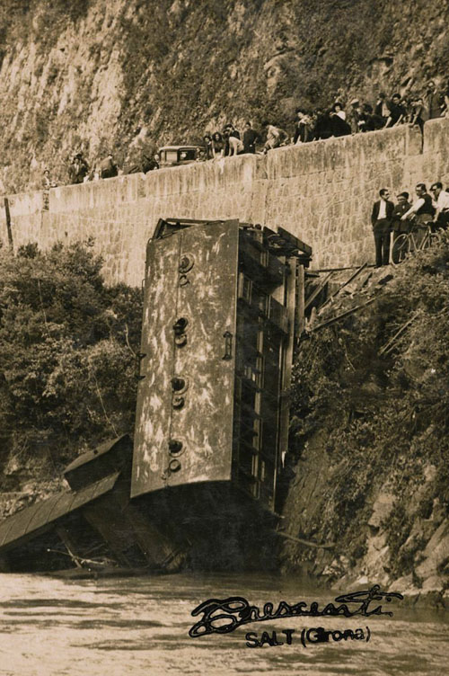 Accident d'un comboi del carrilet de Girona-Olot prop de Bescanó carregat amb 300 excursionistes del GEiEG. 19/5/1949. Salvador Crescenti Miró. CRDI - Ajuntament de Girona - (Ampliar)