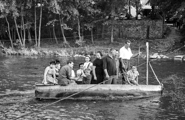 La família Crescenti Gironella al pas de la barca de llibant de Bescanó. 1935. Salvador Crescenti Miró. CRDI - Ajuntament de Girona - (Ampliar)