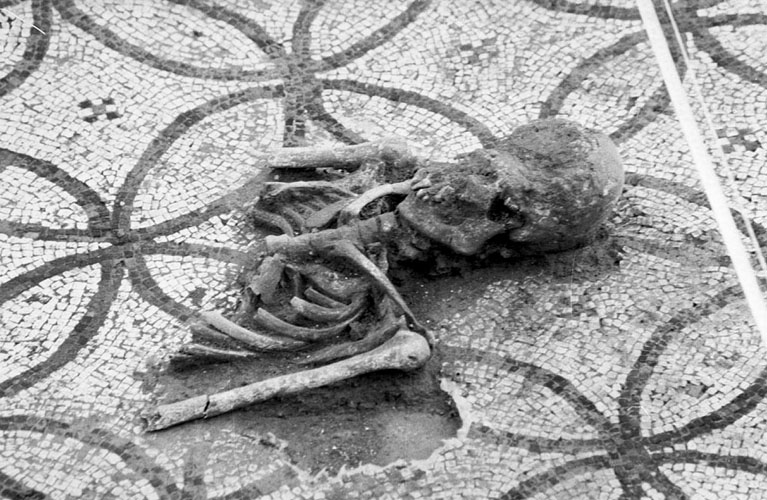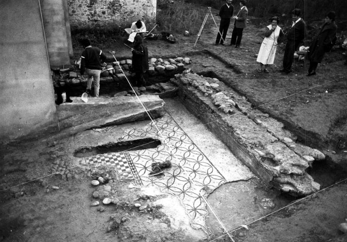 Mosaic bicolor i restes trobades a Montfullà segle I aC. 1987. David Quintana. CRDI - Ajuntament de Girona - (Ampliar)