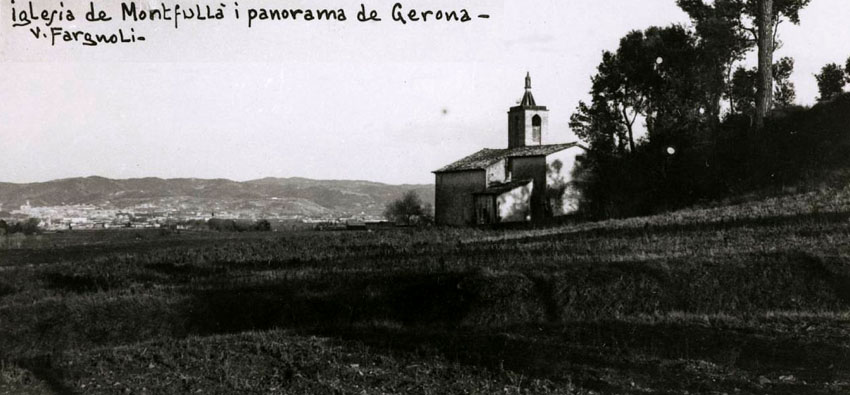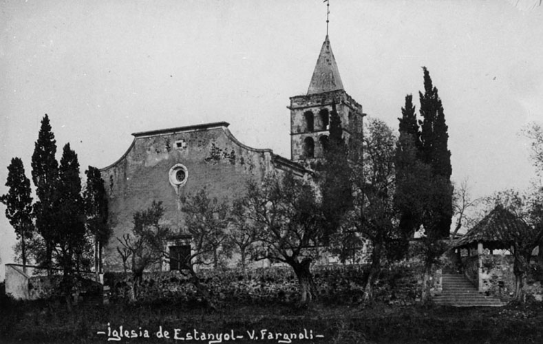 El poblament del nucli de Montfullà és disseminat i tradicionalment s’ha dedicat a l’agricultura. La població celebra la festa major pels volts de Sant Pere, al juny. L'indret és documentat l’any 882, quan el bisbe Teuter, de Girona, donà diversos delmes de l’església de Sant Pere (“basilicam Sancti Petri in monte foilani”), a la seu de Girona. L’any 1058 la comtessa Ermessenda va restituir aquesta església al bisbe Berenguer de Girona. També és citada en l'homenatge prestat per Guillem Castell a favor de Pere de Carcassona, bisbe de Girona. Església de Sant Andreu d'Estanyol. Vista de la façana i del campanar. 1911-1936. Valentí Fargnoli i Annetta. CRDI - Ajuntament de Girona - (Ampliar) Estanyol.