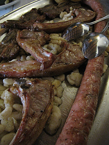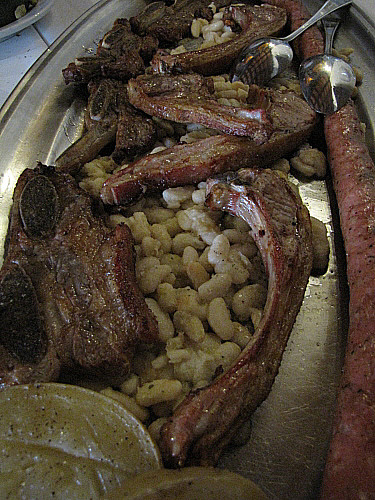 Festa gastronòmica composta d'uns entrants (amanida, croquetes, taula d'embotits d'Adri, musclos a la planxa i cargols La Sala amb les seves salses), calçots, i plata de carns amb mongetes (botifarra, costelles, xurrasco, patates al forn) - (Clicar damunt les imatges per ampliar-les)
