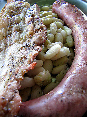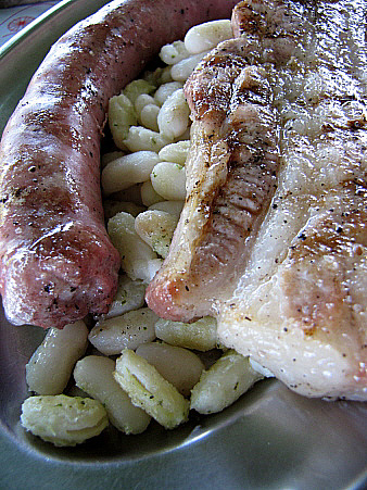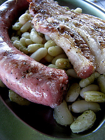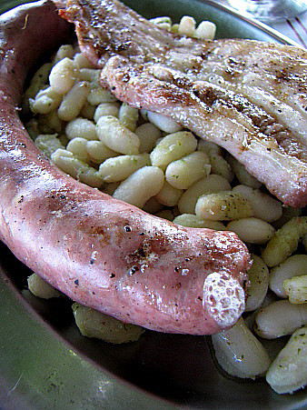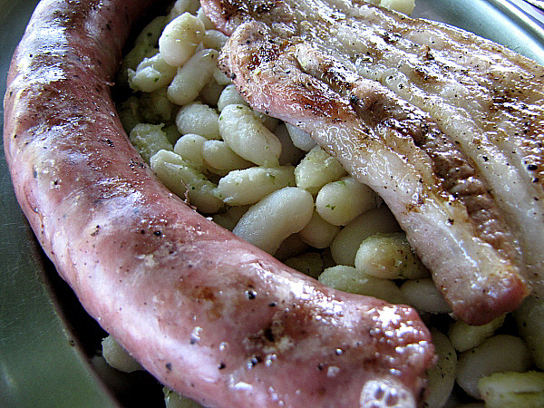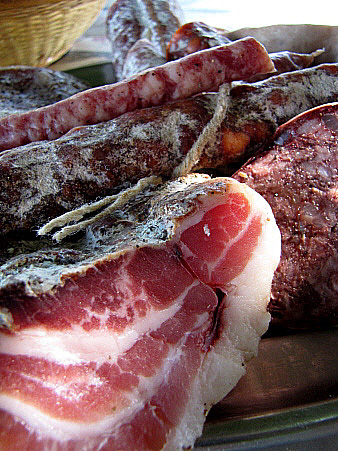 El plat fort de l'esmorzar és, en un cas, una plata de seques amb botifarra i una xulla, llenca de cansalada fregida. En un altre, una galta de porc a la brasa, també acompanyada d'unes mongetes seques. Aquests segons plats poden ser, també, qualsevol varietat de guisats (fets el dia abans, que són més bons), bacallà fregit o amb samfaina, sípia amb pèsols, etc.