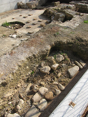 Davant la porta d'entrada de l'església de Sant Menna, unes excavacions a cel obert mostren les restes d'una vila romana activa, al menys, fins el segle V dC, relacionada amb l'entorn de la Gerunda romana, amb les vil·les de Sarrià de Ter, Can Pau Birol i Montfullà.
