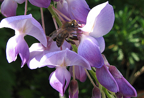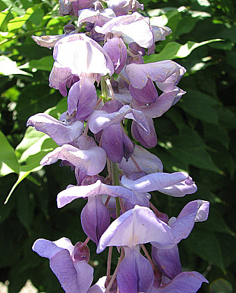 (1) - També s'esmenta que va ser un mariner anglès qui la va introduïr el 1816 a Europa. El capità Welbank, que així s'anomenava, va ser convidat per un comerciant xinès a la seva casa de Canton una nit de primavera. L'amfitrió el va rebre en una pèrgola totalment coberta de flors de glicinia, que allà rebía el nom de zi teng (vi blau). L'espectacle el degué colpir tant que al final de la vetllada va demanar-ne uns esqueixos al comerciant. El capità va fer arribar els plançons a un compatriota i tres anys més tard, el 1819, la glicinia floria per primera vegada a Anglaterra. La planta va tenir un gran èxit i en pocs anys les principals mansions europees exhibien les façanes adornades amb flors de la wisteria. Tornar al text